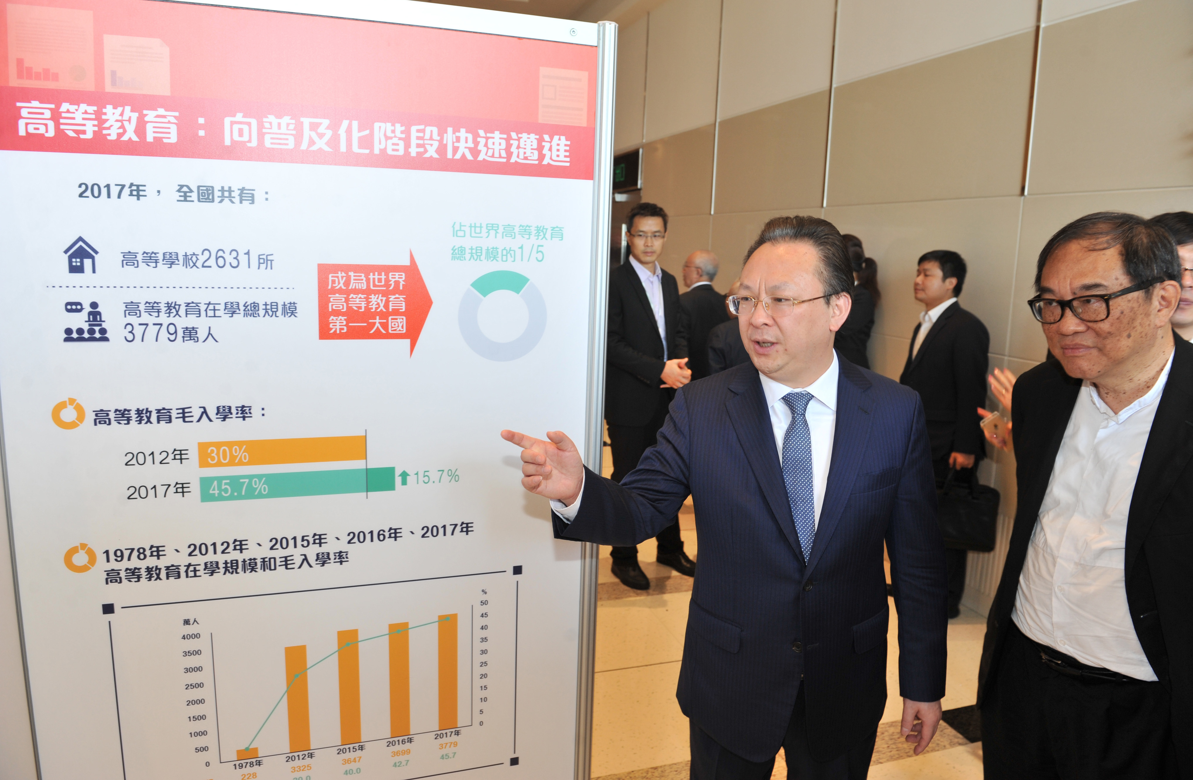 譚鐵牛副主任向來賓介紹內地高等教育。(圖片來源:中央政府駐港聯絡辦)