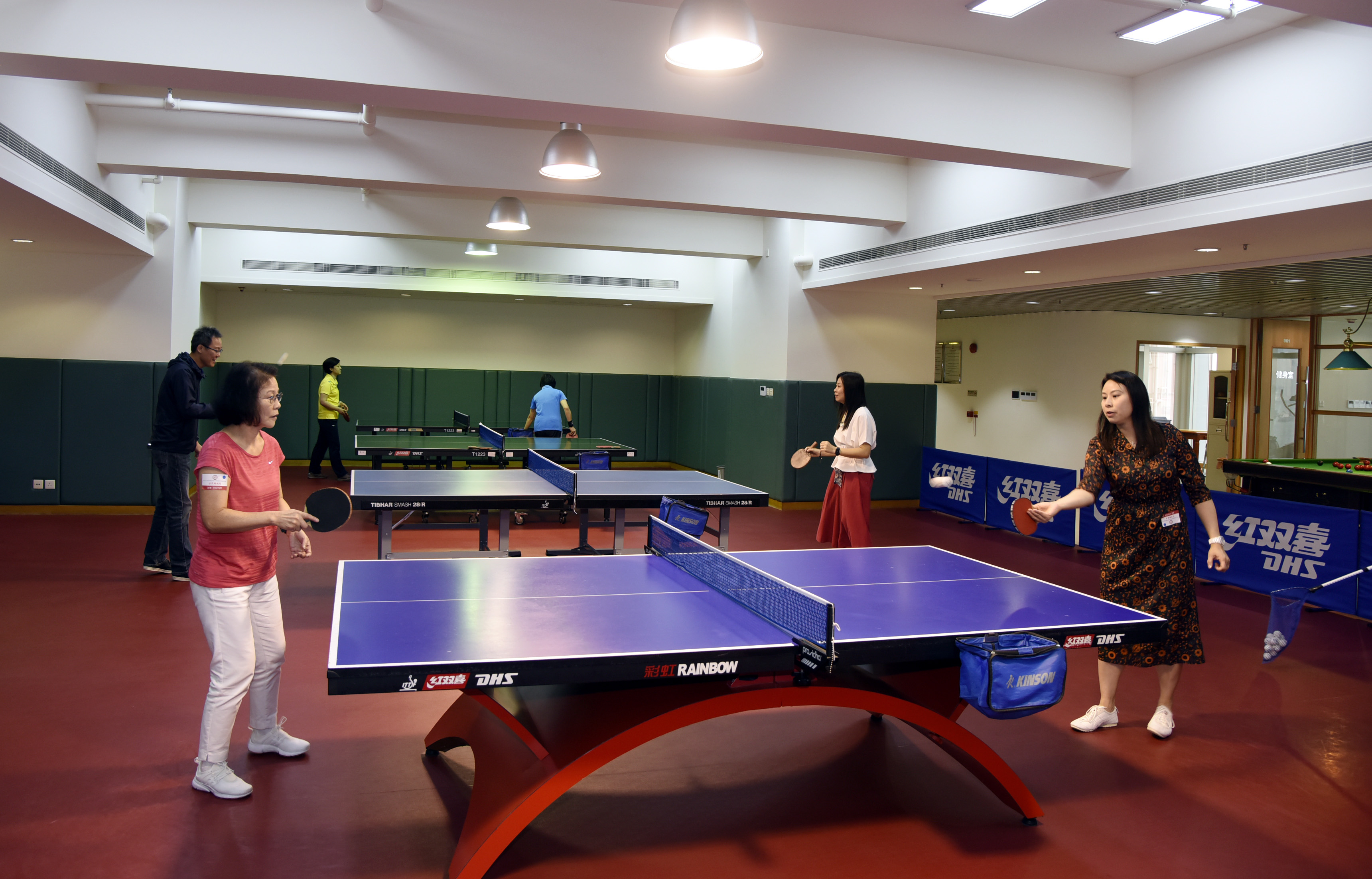 來賓在9樓文體活動室體驗乒乓球。(圖片來源:中央政府駐港聯絡辦)