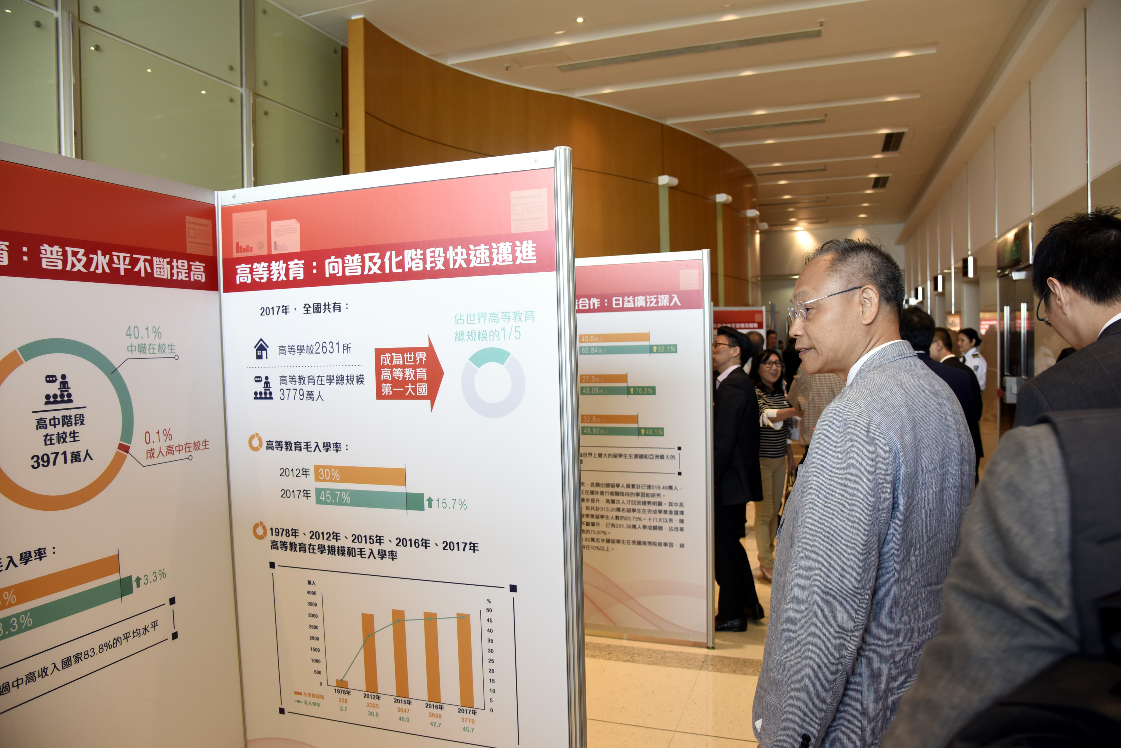 來賓參觀教育專題展。(圖片來源:中央政府駐港聯絡辦)
