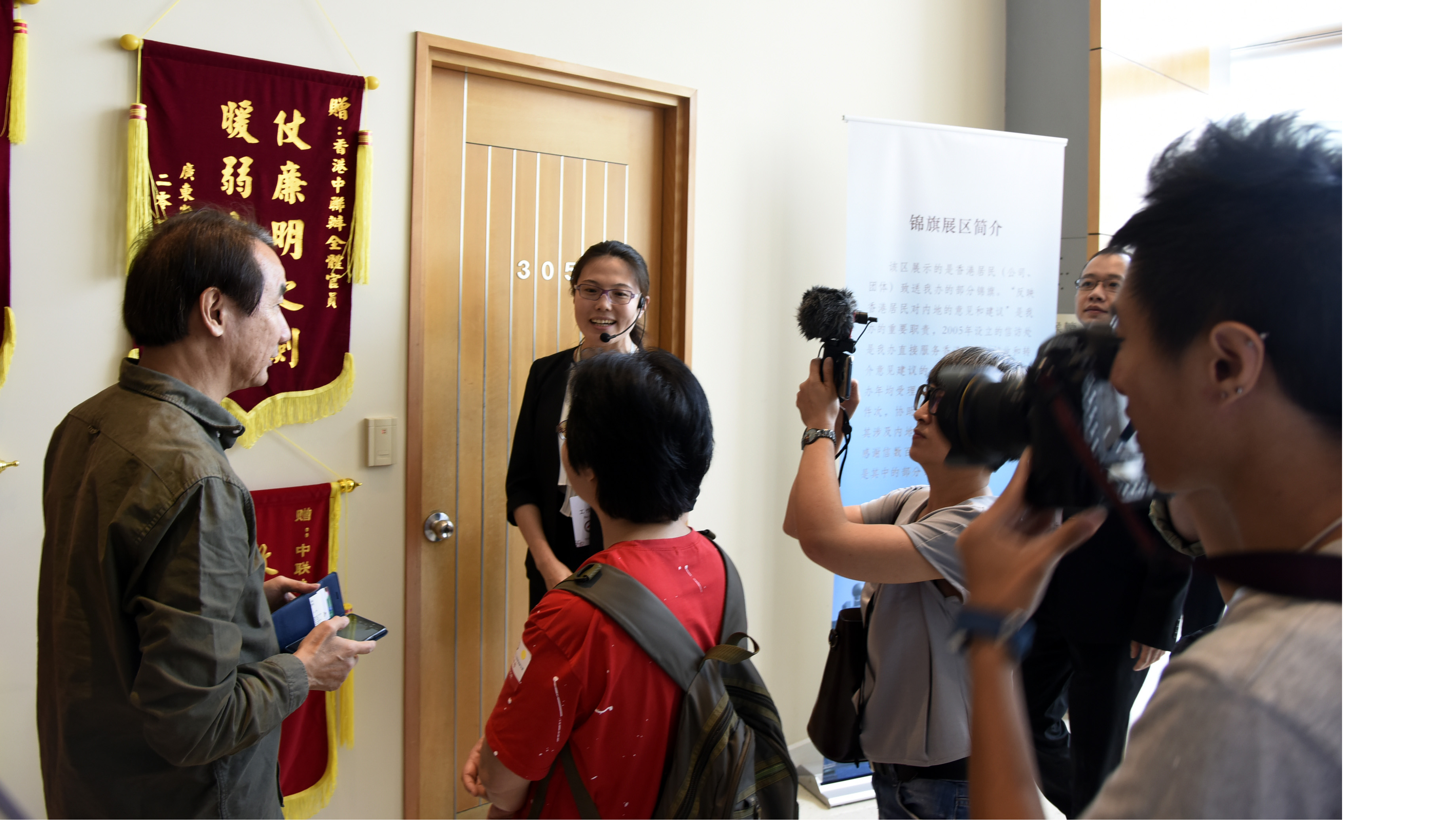 來賓參觀錦旗展區。(圖片來源:中央政府駐港聯絡辦)