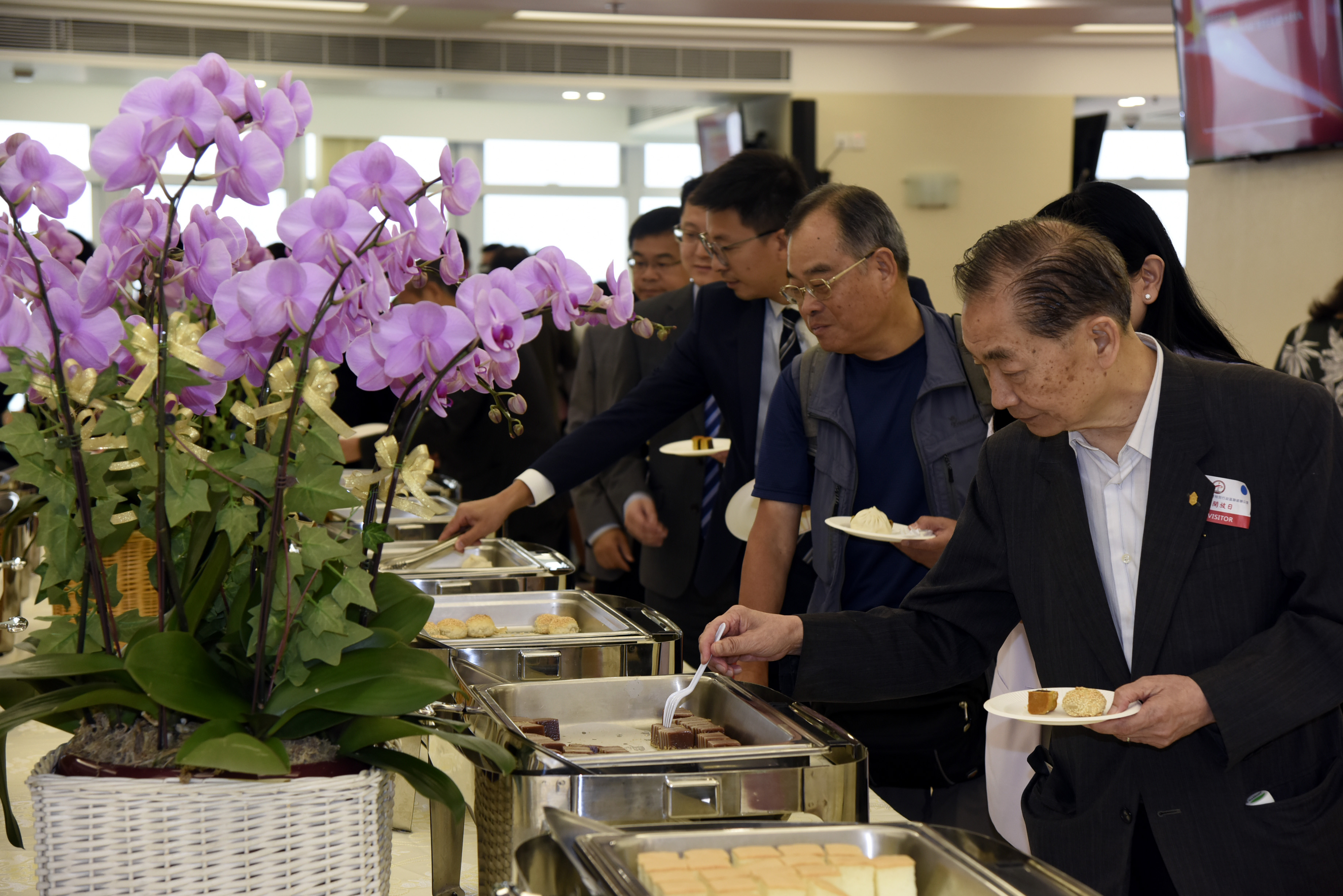 來賓品嘗我辦廚師準備的茶點。(圖片來源:中央政府駐港聯絡辦)