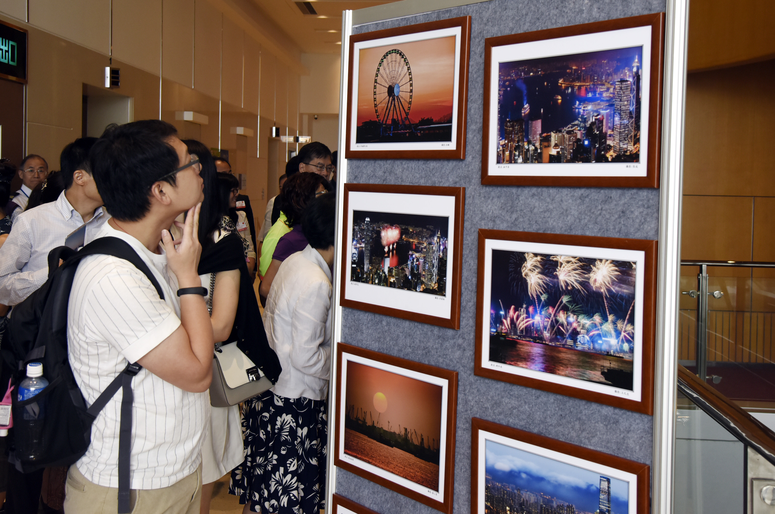 來賓參觀我辦員工攝影展。(圖片來源:中央政府駐港聯絡辦)