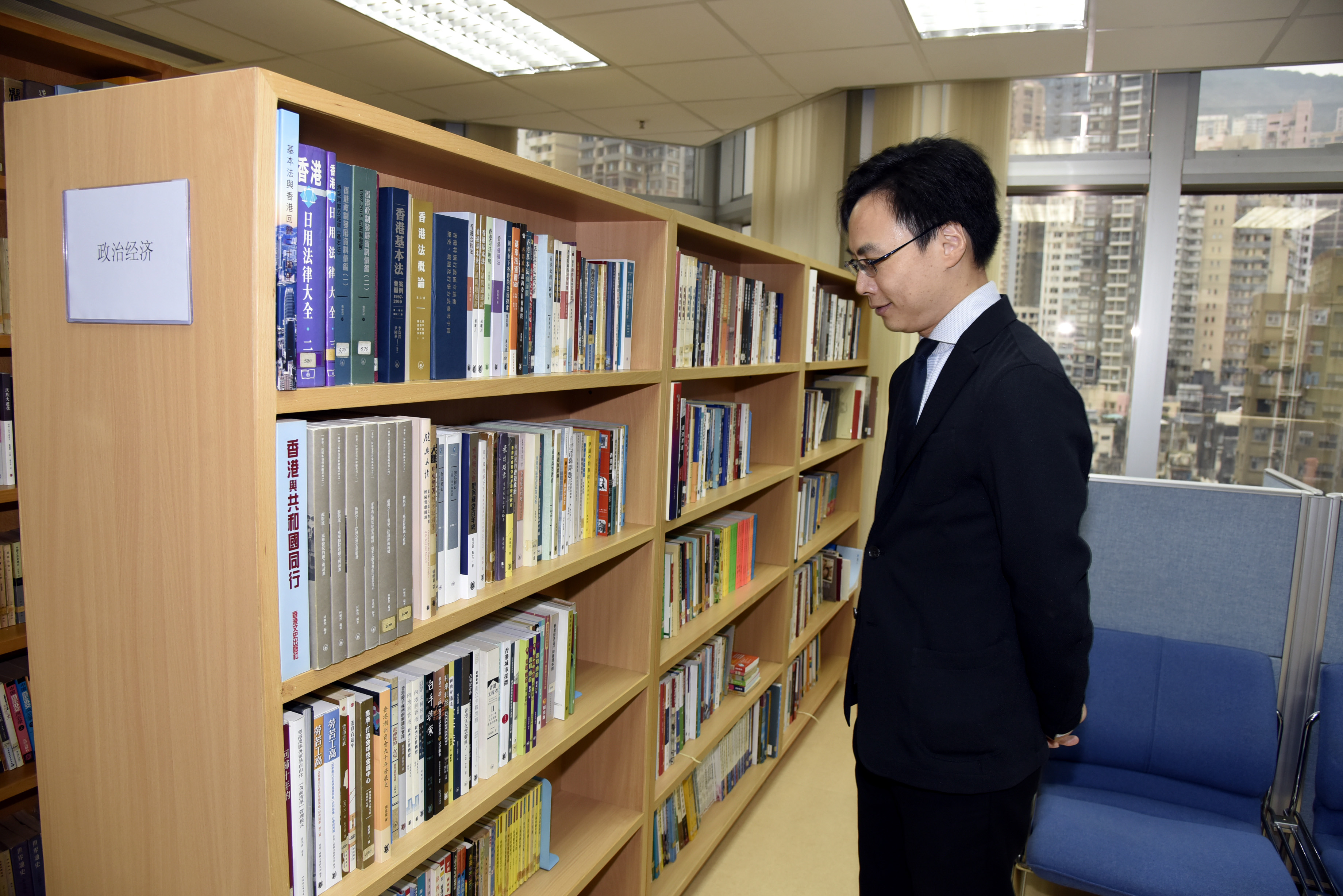 來賓參觀我辦圖書室。(圖片來源:中央政府駐港聯絡辦)