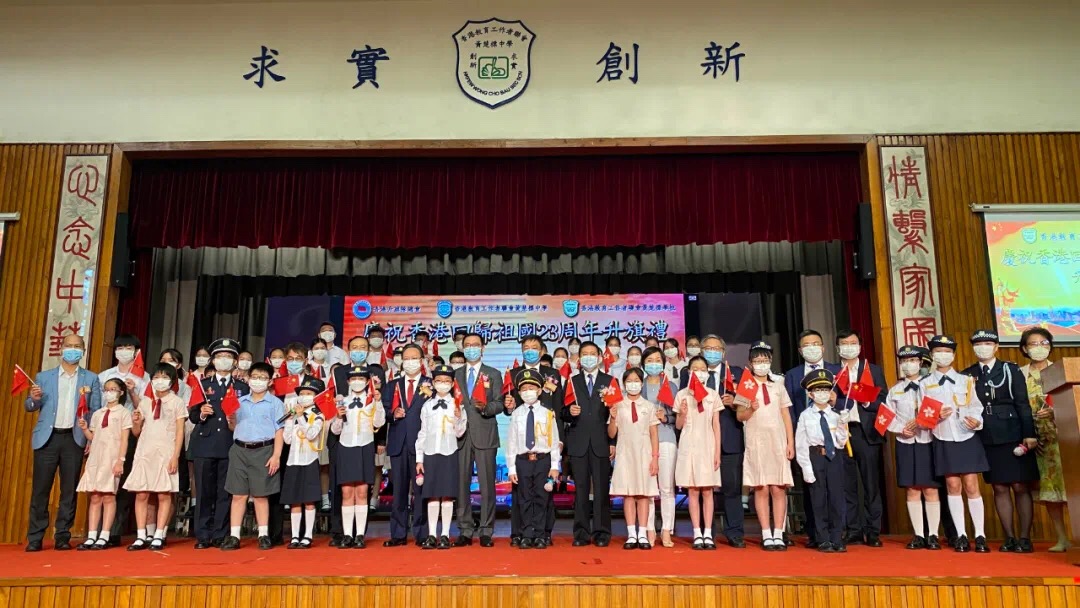 7月1日,全港各區學校在校園內舉行升旗禮、唱國歌等活動,慶祝香港回歸祖國23周年。
