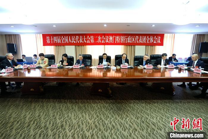 3月7日,出席十四屆全國人大二次會議的澳門代表團舉行開放團組會議。中新社記者 富田 攝